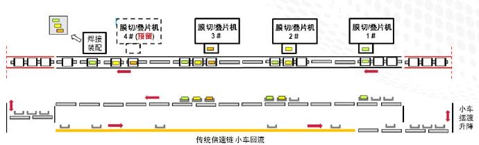 智能动力滑块小车输送系统跟随叠片机的生产节拍;
